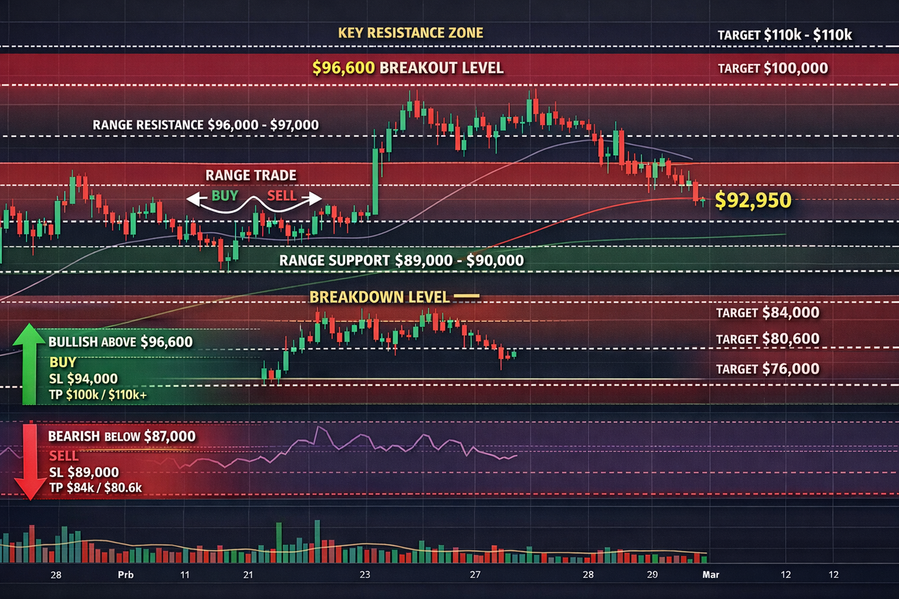 Bitcoin is currently consolidating in a wide range between $89,000 and $97,000, indicating indecision and compression before a major move.