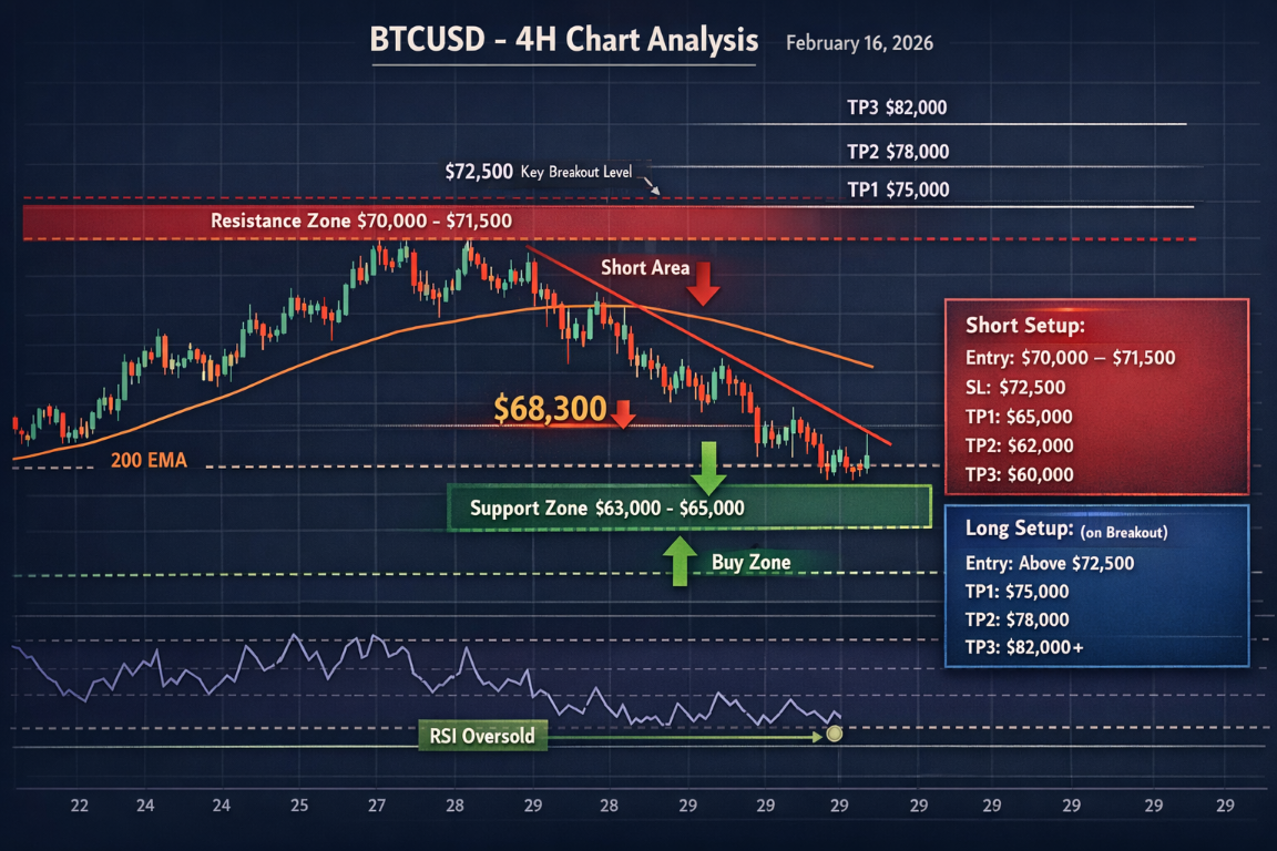 BTCUSD Market Analysis – 16th February 2026