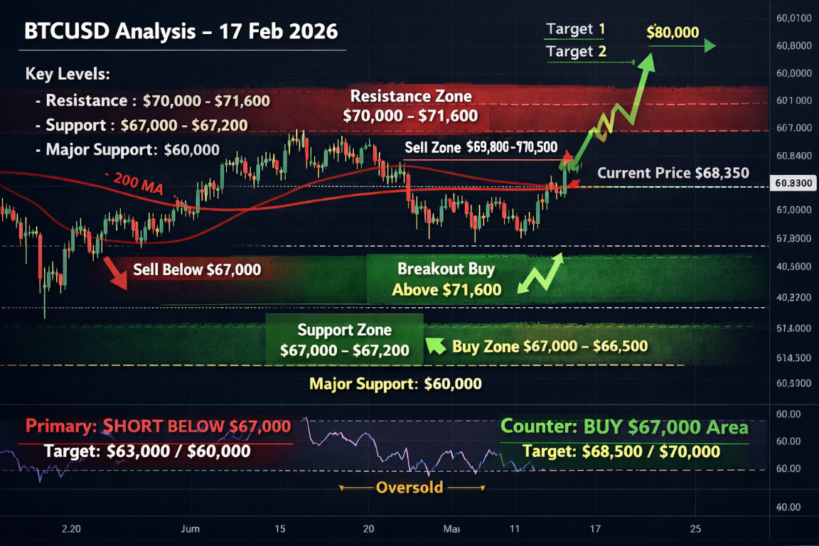 BTCUSD Market Analysis – 17th February 2026
