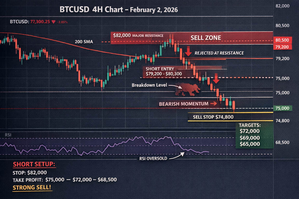 BTCUSD Market Analysis - 2nd February 2026