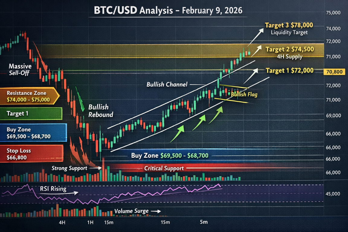 BTCUSD Market Analysis – 9 February 2026