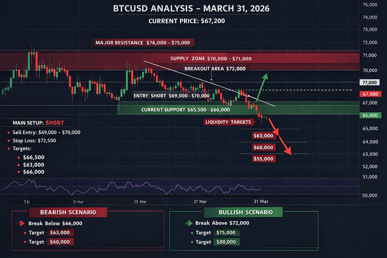 BTCUSD Market Analysis – 31 March 2026
