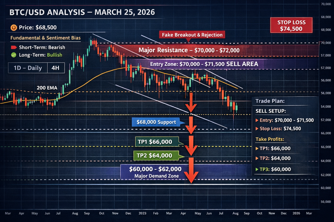 BTCUSD Market Analysis – March 25, 2026